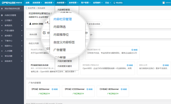 | 內(nèi)容欄目管理 | 對網(wǎng)站內(nèi)容欄目進行管理 | |
